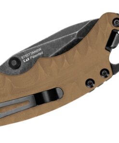 The Shuffle II is an tanto knife adaptation of the original that also sports a longer handle and blade. It’s still a compact knife and multi-function tool for everyday adventurers. The Shuffle II has a BlackWash finished tanto style blade, a backspacer with a bottle-opener, and a lanyard hole that is also an emergency screwdriver. The tan GFN handle features a sculpted pattern grip, nested steel liner lock, and reversible deep carry pocket clip.