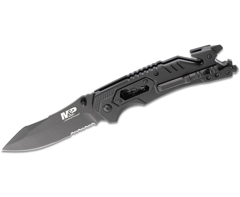 Smith & Wesson M&P Assisted Open Knife & Tool – 3.5″ Clip Point Partially Serrated Blade
